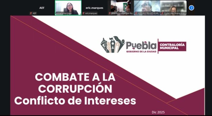 Puebla, Pue.- Con el objetivo de fortalecer la integridad institucional, el Gobierno de la CIudad a través de la Contraloría Municipal, llevó a cabo la capacitación en línea “Combate a la Corrupción–Conflicto de Intereses”, dirigida a 310 personas servidoras públicas de diversas Dependencias y Entidades de la administración municipal.