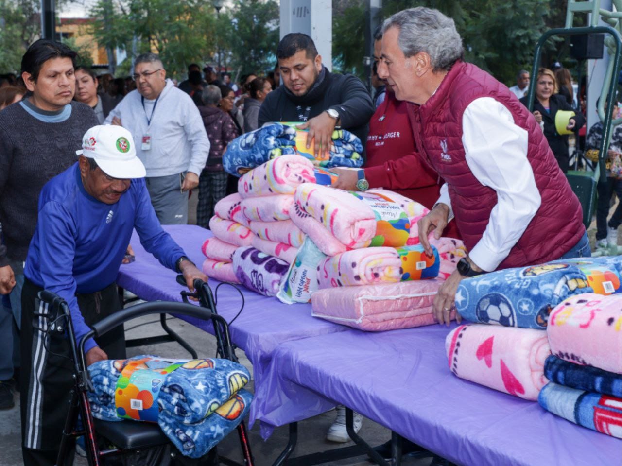 De igual forma, ante el descenso de temperatura, se realizó la entrega de cobertores para reforzar la salud y bienestar de la población vulnerable, principalmente a niñas, niños y personas mayores para prevenir enfermedades ante la temporada invernal.