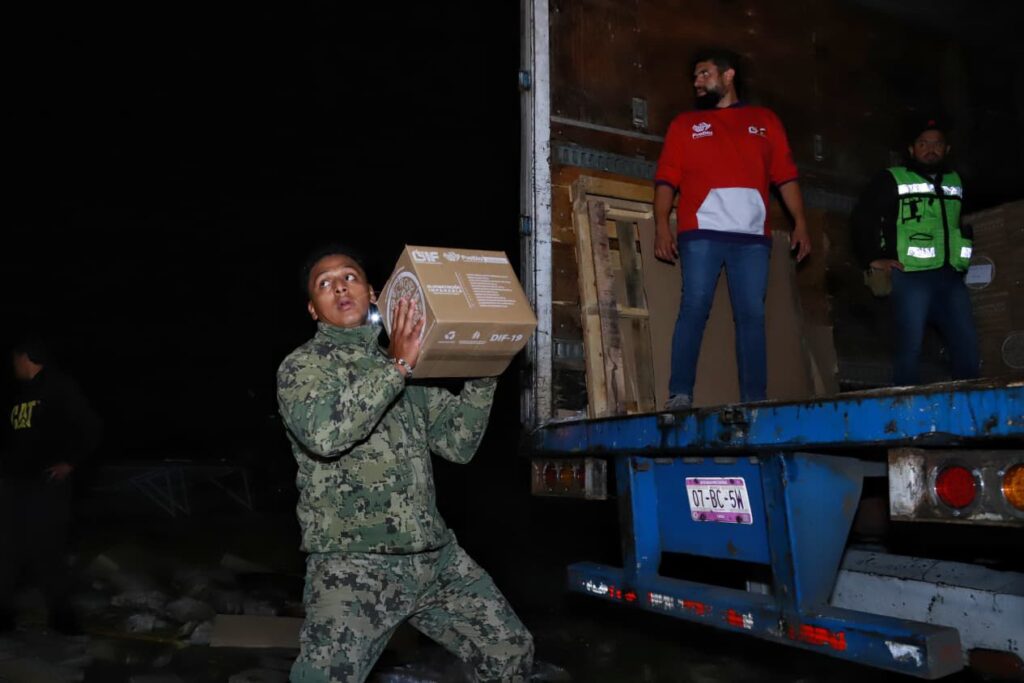 El apoyo fue recibido en el recinto ferial de la demarcación, donde decenas de personas participaron activamente en la descarga y organización de los paquetes alimentarios que serán distribuidos entre las familias afectadas por la tormenta tropical Raymond.
