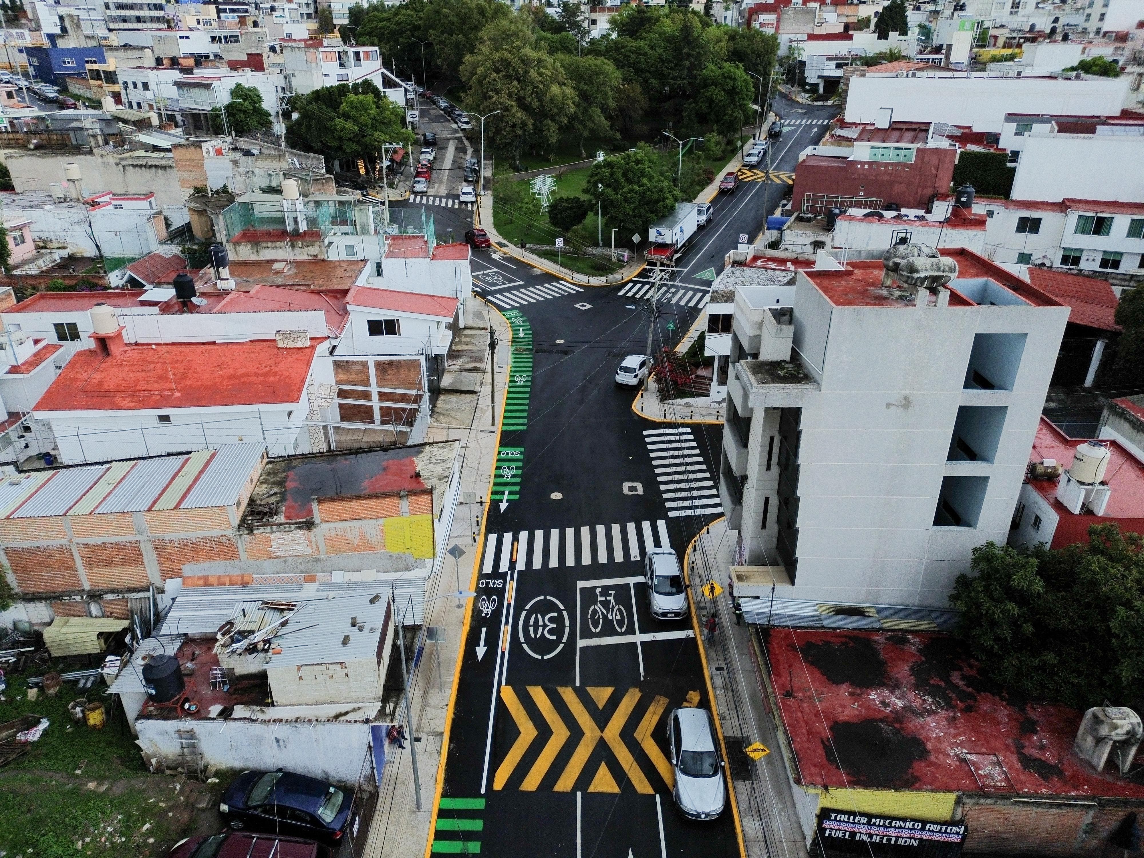 “En esta vialidad integral, sembramos árboles, construimos cinco metros de bocacalles, banquetas con guía podotáctil para personas con debilidad visual, rampas e infraestructura ciclista en 760 metros. Además, colocamos 118 segregadores viales, bolardos, reductores de velocidad, señalética vertical, señalética horizontal y luminarias”, aseveró.