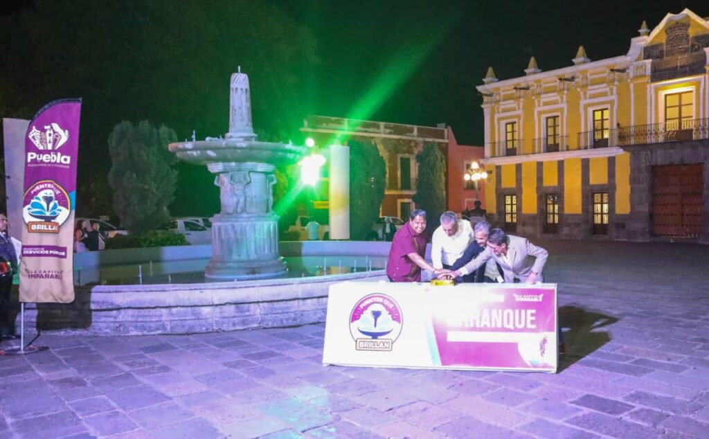 Puebla, Pue.– Como parte del compromiso con la recuperación de espacios emblemáticos de la ciudad, el presidente municipal, Pepe Chedraui Budib, inició la estrategia “Fuentes que Brillan” que consiste en la rehabilitación integral de las fuentes de la capital, para devolverles vida, color y seguridad para el disfrute de todas y todos.