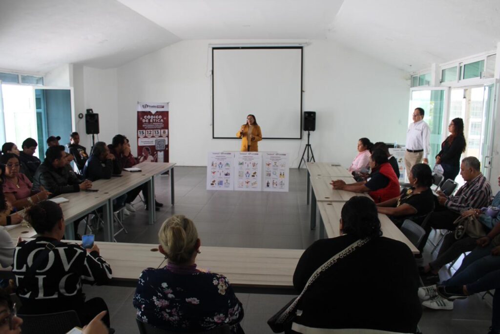 La capacitación abordó el tema «Código de Ética”, que tuvo como objetivo realizar actividades de formación de principios y valores mediante actividades lúdicas a través de una lotería y un memorama de valores, que permiten un mejor entendimiento del servicio público y así fortalecer los principios de responsabilidad, integridad y compromiso en su actuar diario.