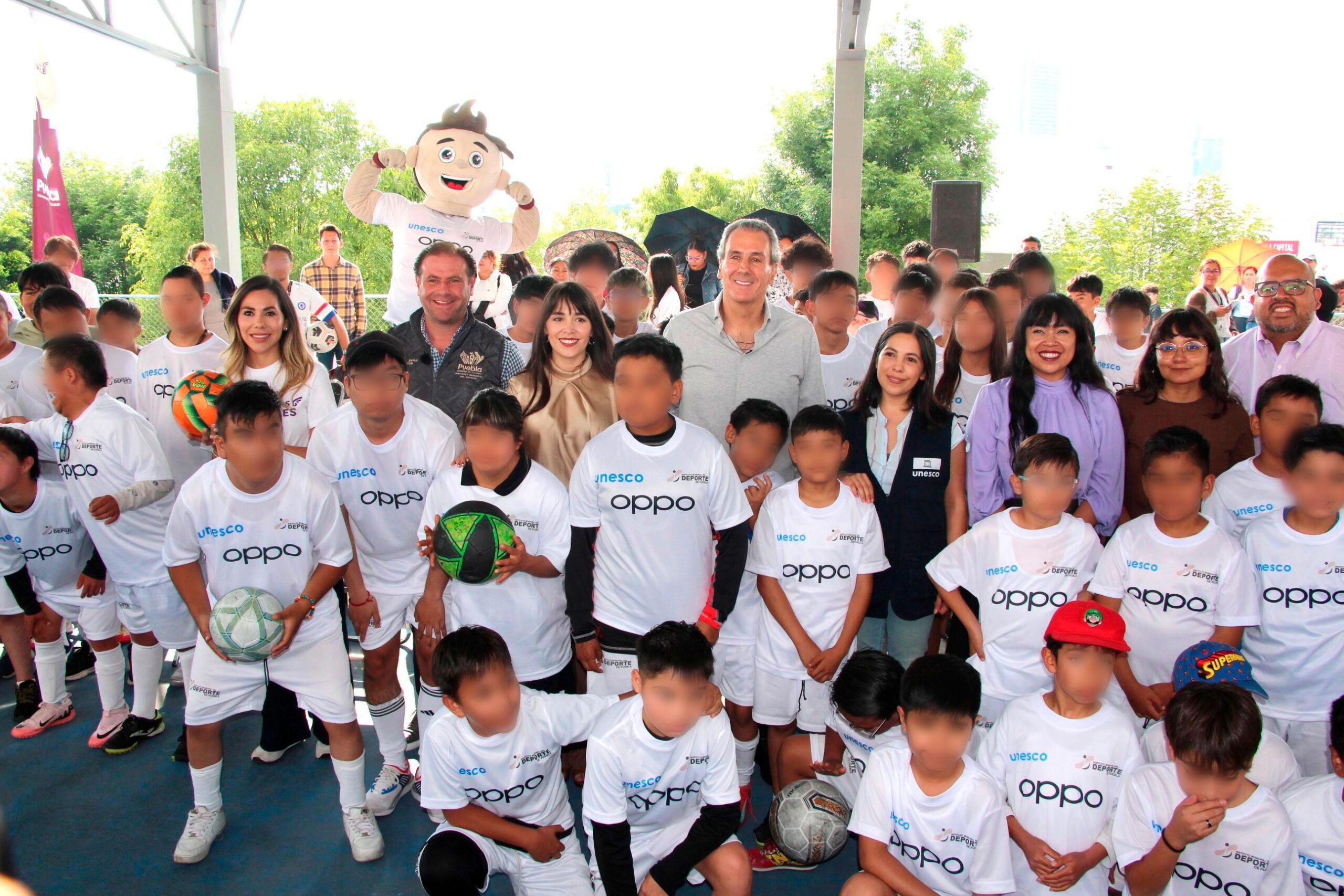 Puebla, Pue.- Para fomentar el deporte y promover una vida saludable desde la niñez, el presidente municipal, Pepe Chedraui Budib y el director del Instituto Municipal del Deporte de Puebla (IMDP), Ricardo Zayas Gallardo, en conjunto con OPPO y UNESCO, realizaron la entrega de uniformes deportivos y material de entrenamiento a niñas, niños y jóvenes de las Escuelas de Iniciación de Fútbol.