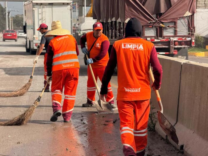 Las brigadas del OOSL realizaron trabajos de barrido, retiro de residuos y limpieza de la vialidad afectada, con el objetivo de restablecer la circulación y garantizar condiciones óptimas para automovilistas.
