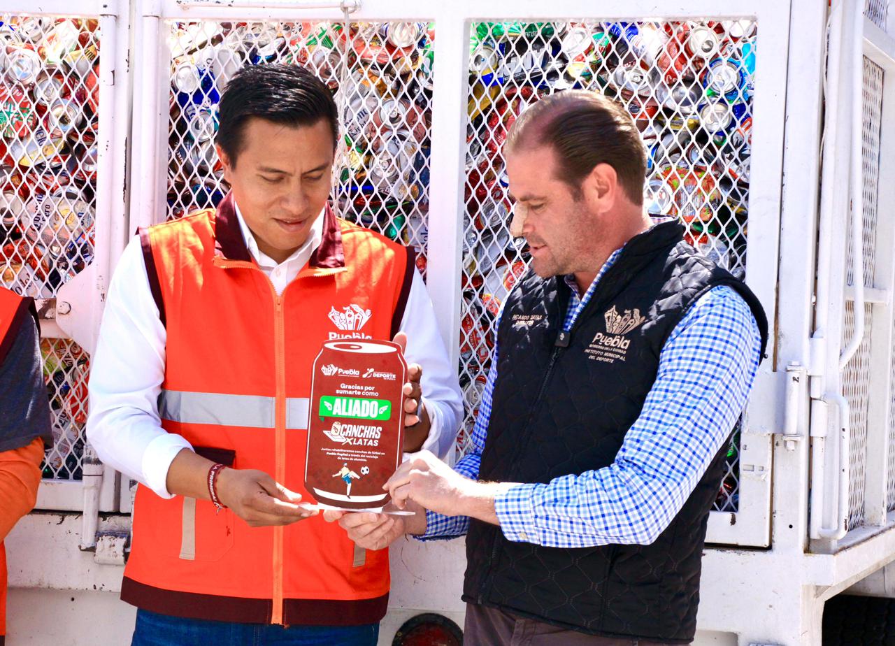 Puebla, Pue.- Con la suma de esfuerzos entre las entidades del Gobierno de que Ciudad, encabezado por el presidente municipal, Pepe Chedraui, el Organismo Operador del Servicio de Limpia (OOSL) liderado por Omar Rodríguez Corte se suma al programa de Canchas por Latas con la entrega de 50 mil latas de aluminio.
