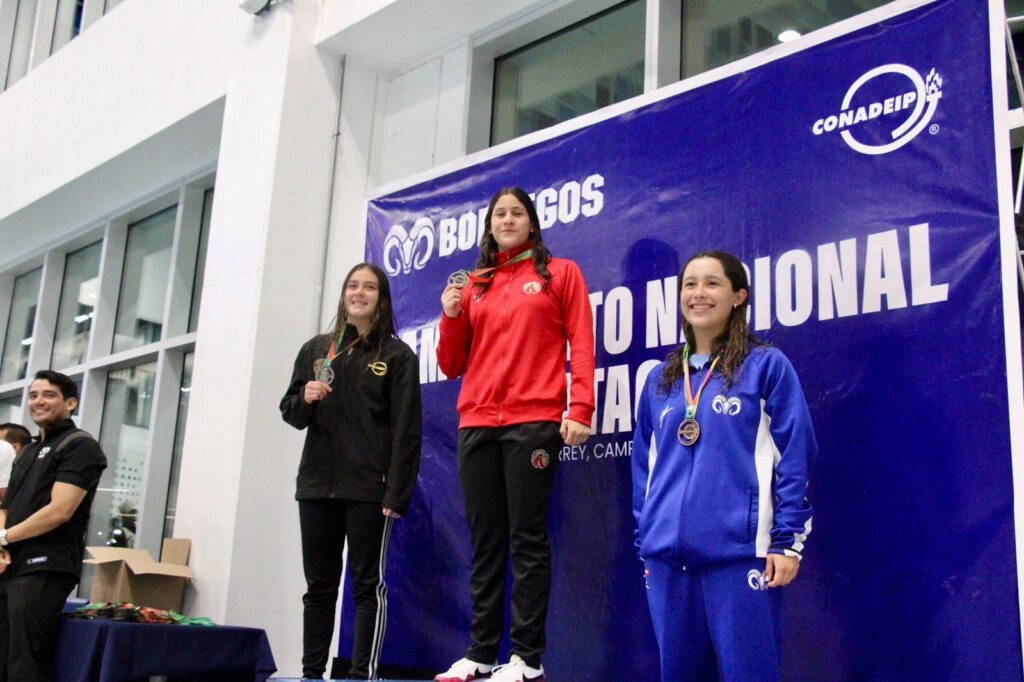 Puebla, Pue.- Las Águilas UPAEP destacaron en el Campeonato Nacional CONADEIP de Natación realizado en el Tecnológico de Monterrey, donde Camila Ramírez Flores quedó campeona individual de la categoría Juvenil C femenil, además de contribuir al tercer lugar por equipos en la misma división. En Primera Fuerza, Aranza López Sánchez también brilló al conquistar tres medallas.