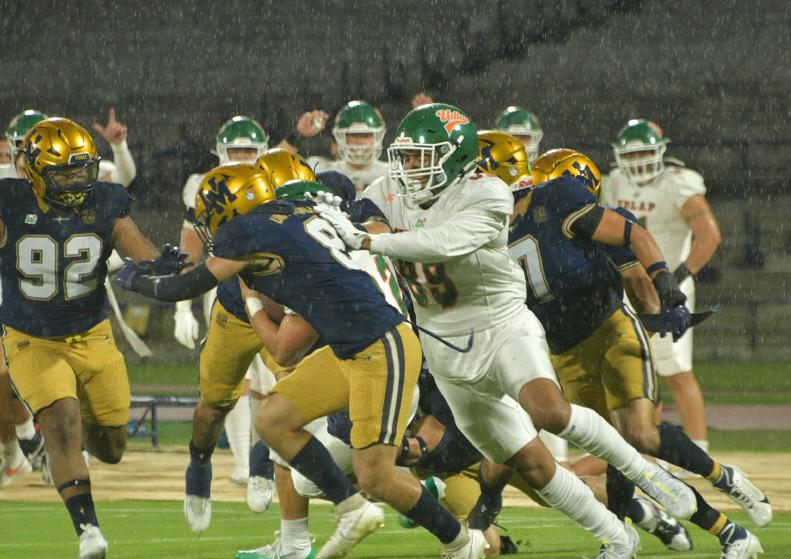 Los Aztecas de la UDLAP visitaron el Estadio Olímpico Universitario para abrir su temporada en 2025 aunque no fue fácil, el rival complicó las acciones ofensivas hasta que en el minuto 1:59 del segundo cuarto Bruno Mercado atravesó la línea imaginaria de zona de anotación con un acarreo para abrir el marcador 7-0. Posterior a ello la defensiva levantó un auténtico muro verde para no dejar pasar los intentos ofensivos, incluso logró una intercepción por conducto de Juan Saint André al minuto 1:28.