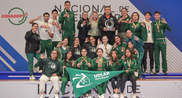 Cholula, Pue.- Los Aztecas de taekwondo de la UDLAP cerraron su actuación en el Campeonato Nacional de la CONADEIP con la suma de 14 medallas (2 de oro, 6 de plata y 6 bronce) y los trofeos de Subcampeón femenil de combate, Subcampeón femenil de poomsae y tercer lugar varonil de poomsae, consagrándose así entre los mejores del país en el deporte marcial en México.