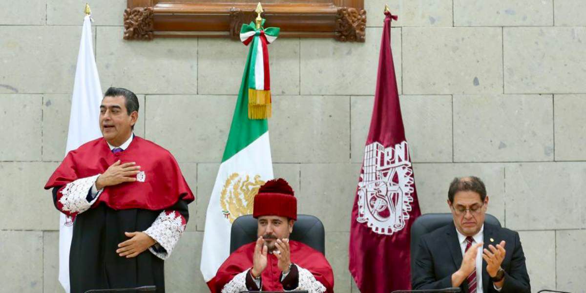 Ciudad de México.- Por su labor y aportaciones a la sociedad mexicana que han contribuido al progreso, bienestar y fortalecimiento de los principios democráticos que rigen la vida pública, así como por el impulso que dio para que se concretara la llegada de la oferta educativa de Instituto Politécnico Nacional (IPN) al estado de Puebla, el exgobernador de la entidad y actual comisionado del Instituto Nacional de Migración (INM) Sergio Salomón Céspedes Peregrina recibió el grado de Doctor Honoris Causa del IPN.
