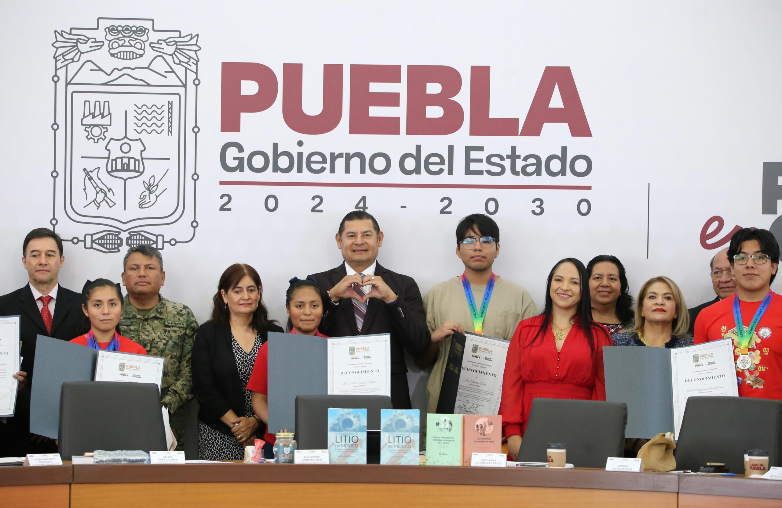 En este contexto, el gobernador de Puebla entregó reconocimiento a las y los estudiantes de la delegación que participó en la Olimpiada Internacional de Matemáticas, celebrada en Singapur, donde obtuvieron una medalla de oro, 5 platas y 3 bronces. La competencia se llevó a cabo del 5 al 8 de julio y compitieron 2 mil 380 estudiantes representantes de 37 países. Puebla se posicionó como referente en formación científica de excelencia.