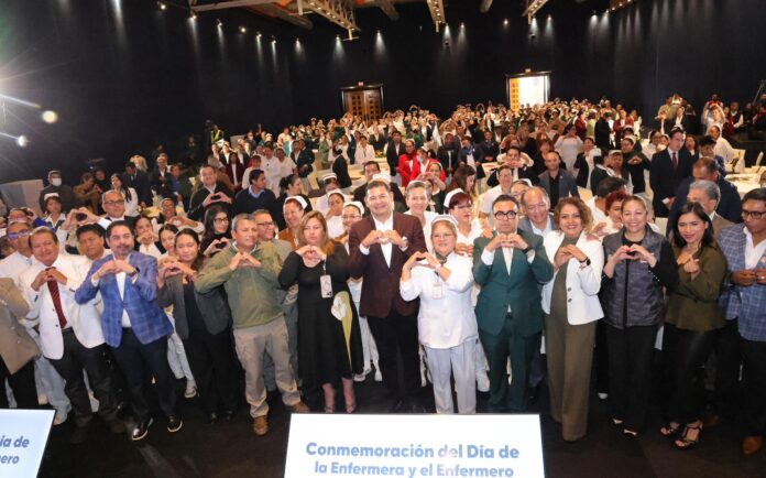 Ante cientos de mujeres y hombres con cofia y bata blanca, el mandatario estatal destacó que este homenaje se inscribe en la visión de la presidenta de México, Claudia Sheinbaum, centrada en la dignidad humana, la justicia social y el reconocimiento al personal de salud como pilar del sistema público.