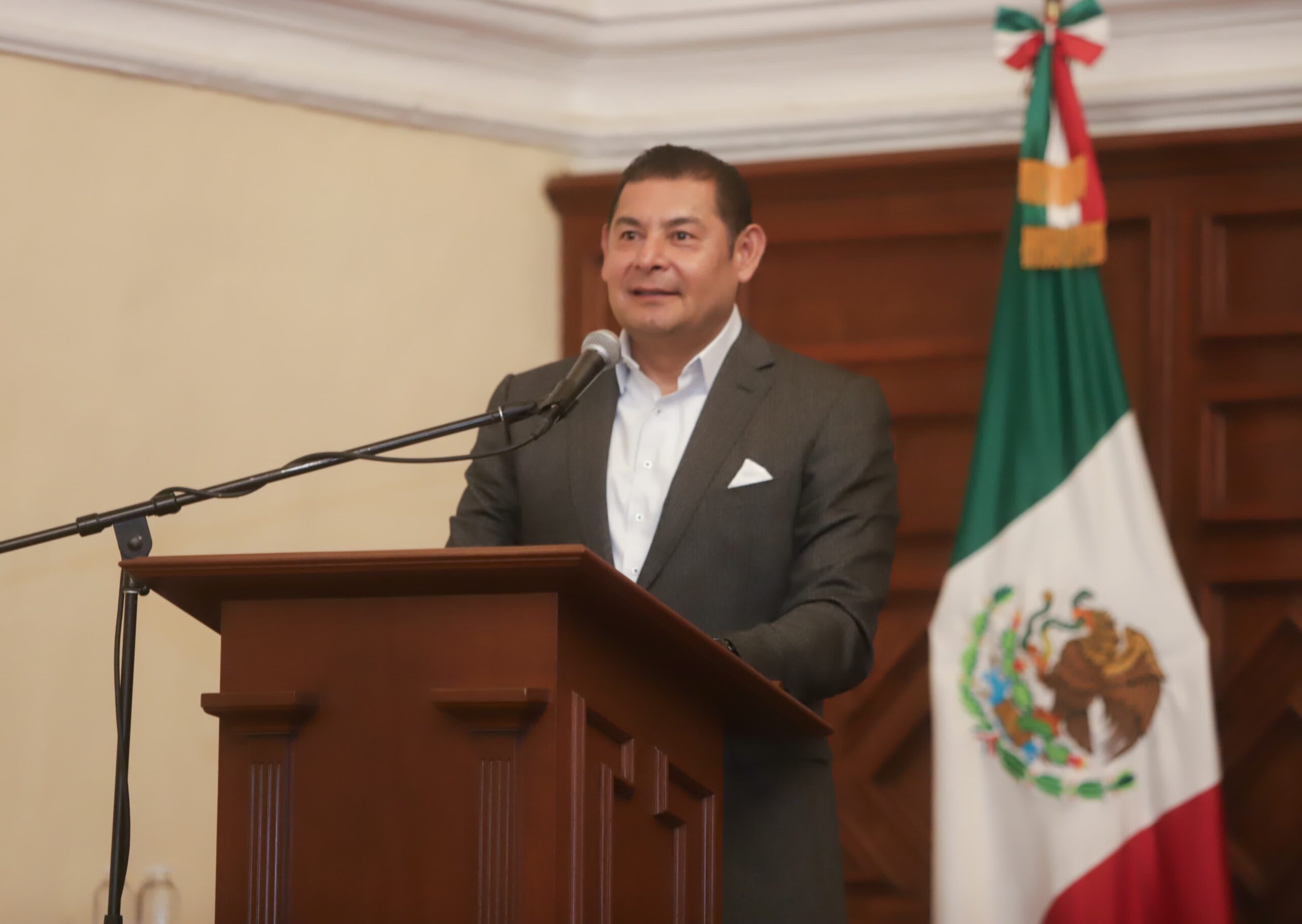 Puebla, Pue.- Los poderes públicos, en su origen, nacen para organizar la vida democrática de las naciones, aseguró el gobernador Alejandro Armenta, durante el Conversatorio “Reforma al Poder Judicial de la Federación”, encabezado por la ministra de la Suprema Corte de Justicia de la Nación, Lenia Batres Guadarrma, en el Salón Barroco del Edificio Carolino de la BUAP.