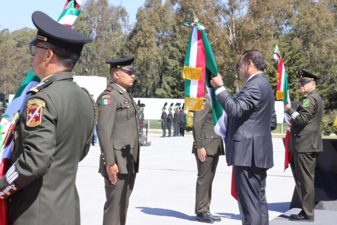 Durante la conmemoración del Día de la Bandera en la explanada de la Escuela Militar de Sargentos, en la XXV Zona Militar, el ejecutivo estatal expresó que el lábaro patrio representa la lucha del pueblo de México por su independencia, la defensa del territorio y la construcción de un país libre.