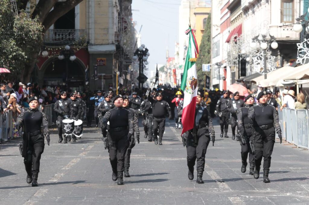 Las corporaciones de seguridad exhibieron equipos de patrullaje, incluidas bicicletas, motos, vehículos tácticos tipo Black para zonas y situaciones de alto riesgo, unidades de bomberos, grupos de proximidad social y la Policía Estatal Forestal. El coronel Mauricio Sánchez López, comandante de la columna del desfile, informó la participación de banderas nacionales, bandas de guerra y más de 900 elementos de seguridad pública y fuerzas armadas, sin registrar incidentes.