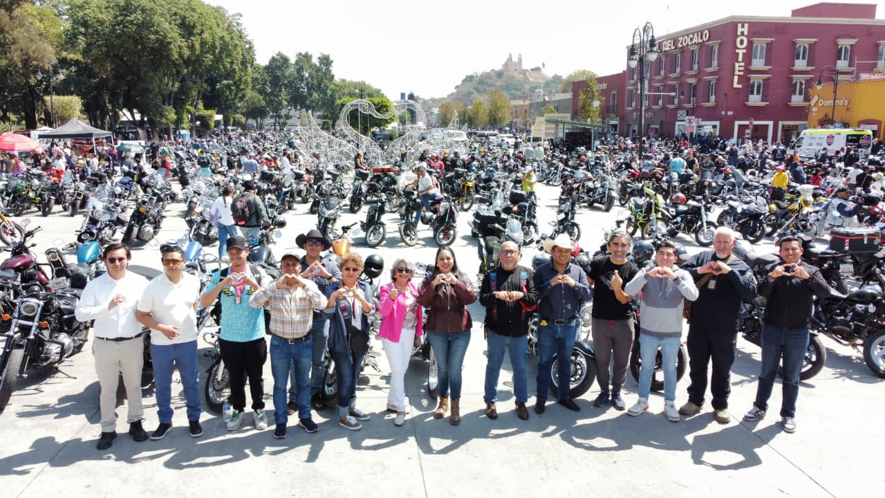 Con la Plaza de la Concordia como punto de encuentro, las autoridades arribaron acompañadas de más de 3 mil motocicletas, generando un ambiente biker y totalmente familiar en el corazón de San Pedro Cholula.