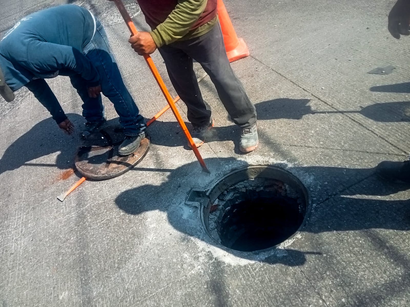 San Pedro Cholula.- A partir de un reporte ciudadano, personal operativo del Sistema Operador de los Servicios de Agua Potable y Alcantarillado de San Pedro Cholula (SOSAPACH) acudió al Barrio de Santiago Mixquitla, donde se realizó la reparación de la tapa de pozo de visita de la red de alcantarillado sanitario.