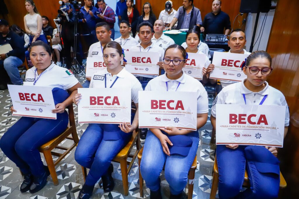San Pedro Cholula, Pue.- El Gobierno Municipal de San Pedro Cholula, encabezado por la presidenta Tonantzin Fernández, refrenda su compromiso con la seguridad pública al continuar con la entrega de becas dirigidas a jóvenes cadetes en proceso de formación dentro de la Secretaría de Seguridad Ciudadana (SSC Cholula).
