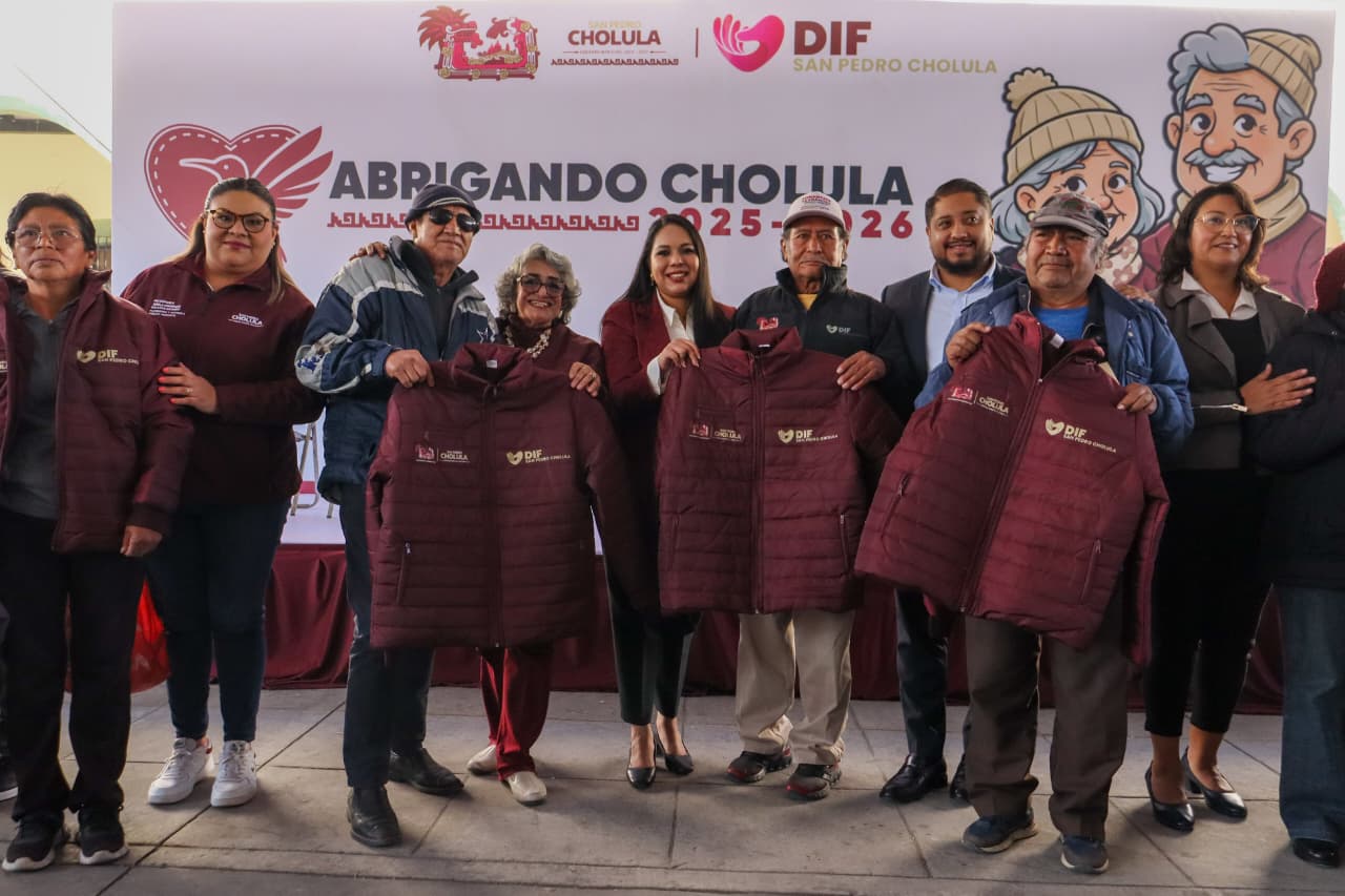 San Pedro Cholula, Pue. – Con sensibilidad social y compromiso con el bienestar de los sectores más vulnerables, el Gobierno Municipal de San Pedro Cholula, encabezado por la presidenta municipal Tonantzin Fernández, en coordinación con el Sistema Municipal DIF, presidido por la Mtra. Lupita Fernández, realizó la entrega de chamarras a personas adultas mayores como parte del programa Abrigando Cholula.
