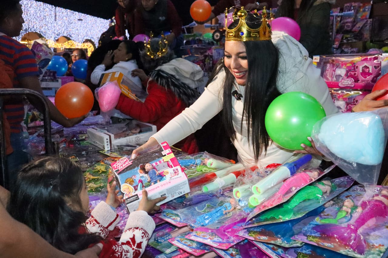 Posteriormente, en la Plaza de la Concordia, se llevó a cabo una entrega masiva de juguetes a niñas y niños de la Cabecera Municipal. Durante el evento, las y los asistentes disfrutaron de un espectáculo infantil, así como de la entrega gratuita de paletas de hielo, algodón de azúcar, pelotas y juguetes.