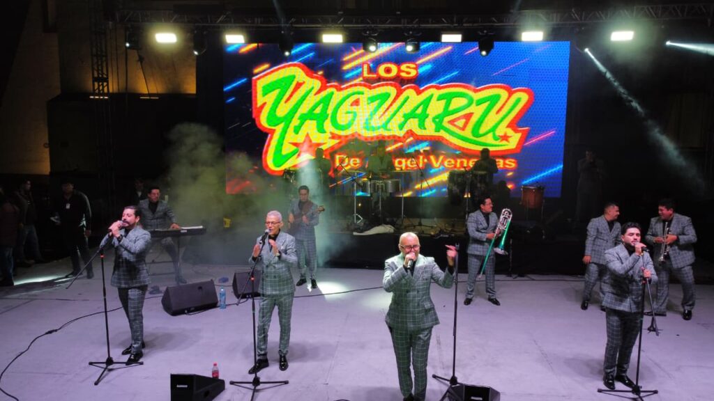 Durante el quinto día de feria, Grupo Yaguaru fue el encargado de poner a bailar y cantar a miles de asistentes en la Plaza de la Concordia, interpretando sus más grandes éxitos, en una velada llena de ritmo y tradición.