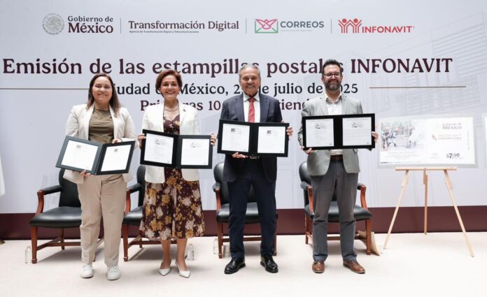 Asimismo, explicó que la estampilla “La vivienda es un derecho, no una mercancía” representa el humanismo y la justicia social del programa de congelamiento de créditos y mensualidades, impulsado por la Presidenta Claudia Sheinbaum Pardo, para terminar con los créditos impagables que se originaron en el pasado y originaban que, aunque la gente pagara interés y capital siempre crecía su deuda.