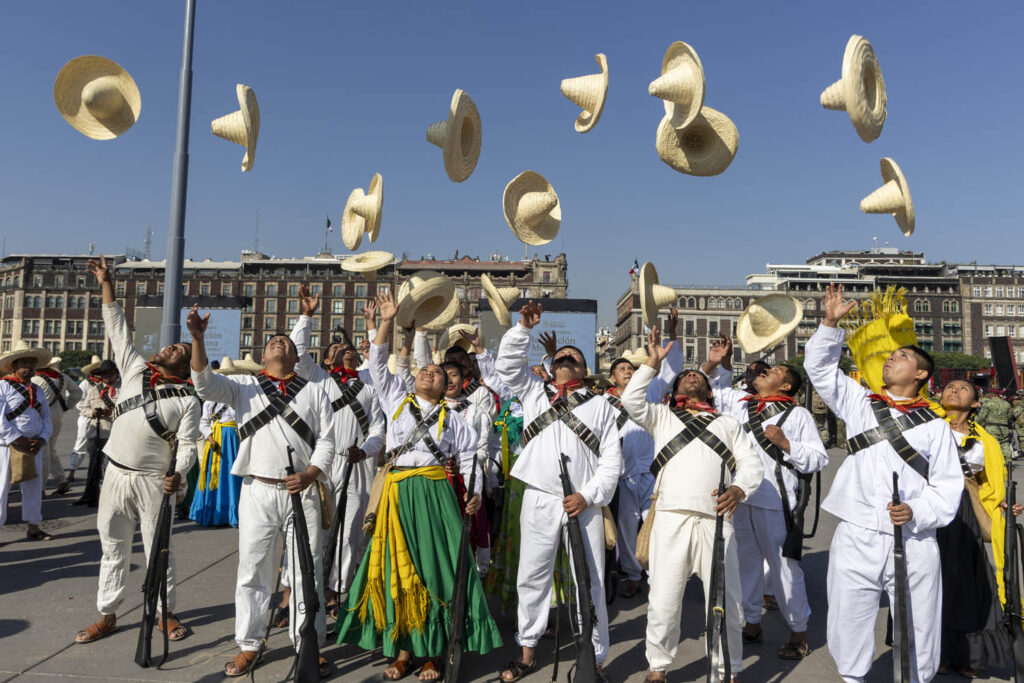 En el Zócalo de la Ciudad de México, integrantes de las Fuerzas Armadas escenificaron los hechos del Plan de San Luis, la Marcha de la Lealtad y la promulgación de la Constitución de 1917.
