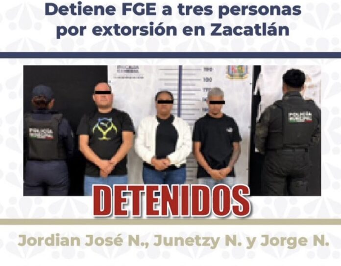 Puebla, Pue. Fiscalía General del Estado (FGE) inició acciones legales en contra de tres personas detenidas, por su probable participación en el delito de extorsión, hechos ocurridos en el municipio de Zacatlán.