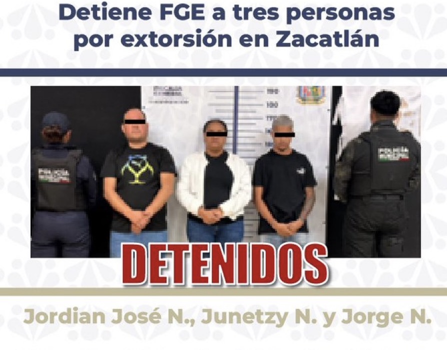 Al efectuar la entrega correspondiente ese mismo día, elementos municipales acudieron al lugar y, tras el señalamiento directo de la víctima, procedieron a la detención de Jordian José N., Junetzy N. y Jorge N.; los dos primeros manifestaron ser de nacionalidad colombiana y el tercero, mexicana.