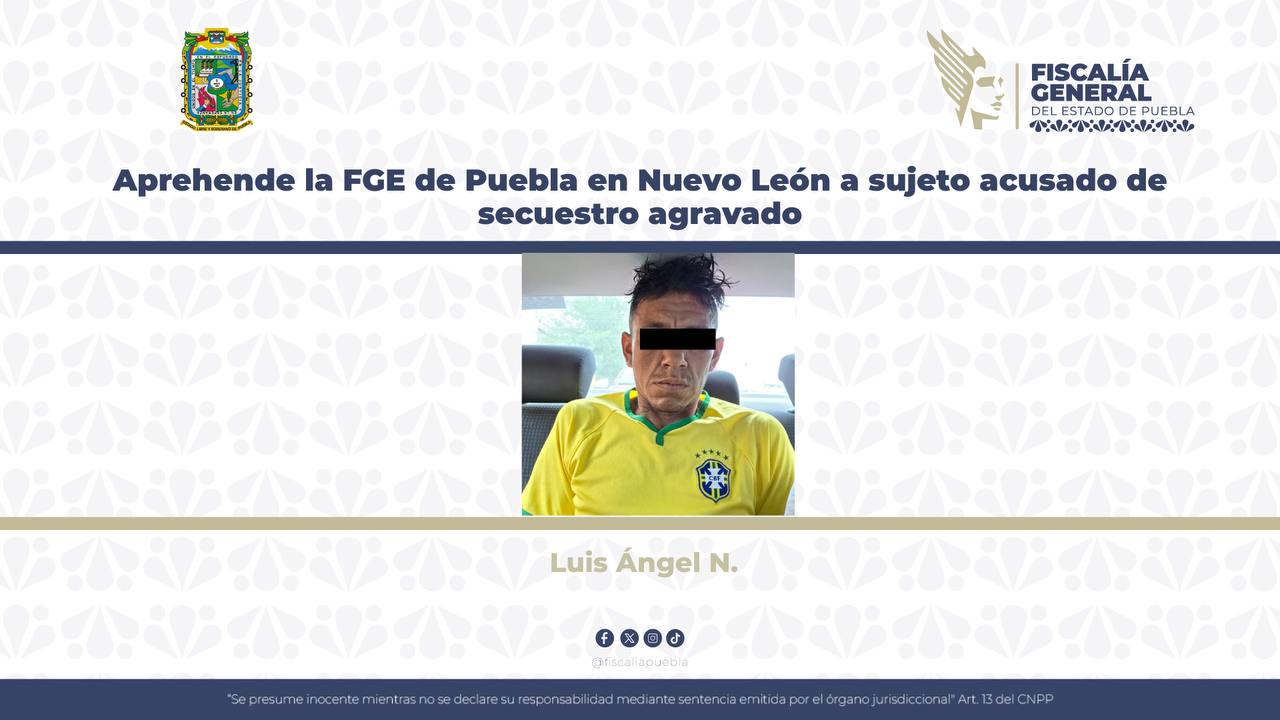 Puebla, Pue.- La Fiscalía General del Estado de Puebla cumplimentó una orden de aprehensión en contra de Miguel Ángel N., de 40 años de edad, como probable responsable del delito de secuestro agravado cometido en el municipio de Teteles de Ávila Castillo, Puebla.