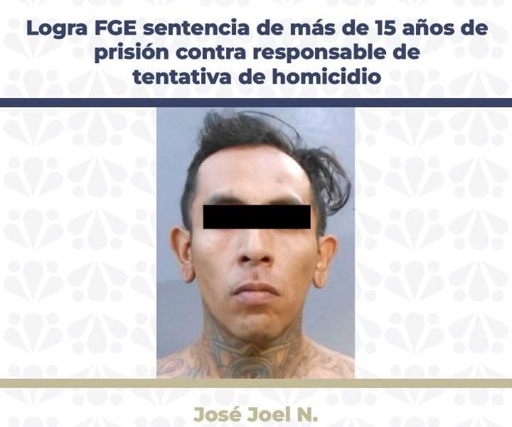 Puebla, Pue.- La Fiscalía General del Estado de Puebla obtuvo una sentencia de 15 años, 10 meses de prisión en contra de José Joel N., declarado penalmente responsable del delito de homicidio calificado en grado de tentativa, en agravio de dos personas en la ciudad de Puebla.