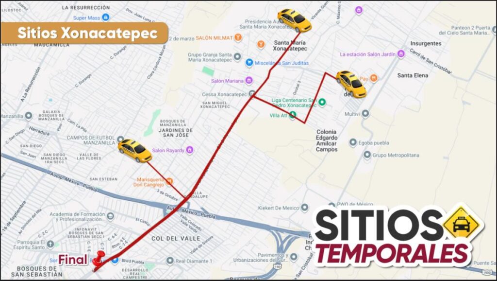 Tanús Osorio informó que se habilitarán cuatro vías de servicios emergentes y provisionales, la primera corresponde al corredor 16 de septiembre, el cual atiende la zona sur de la ciudad; la segunda es el corredor Xonacatepec, con inicio en plaza vía San Sebastián y retorno a la altura de la Cruz Roja para conectar la zona nororiente de la capital. La tercera vía será bajo la ampliación temporal del recorrido de la ruta CREE- Madero; mientras que el cuarto recorrido se trata de mantener en operación el servicio de transporte temporal en el área lateral de la Recta a Cholula.