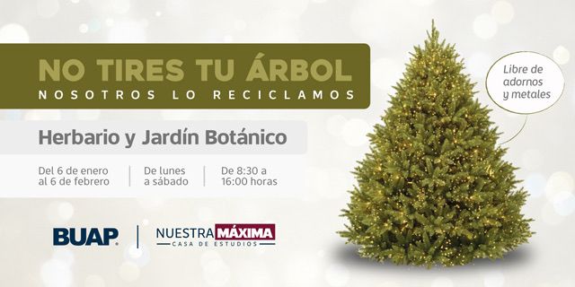 Puebla, Pue.- Hasta el 6 de febrero como fecha límite, el Jardín Botánico Universitario recibirá árboles de Navidaden horario de 8:00 a 16:00 horas, de lunes a sábado.