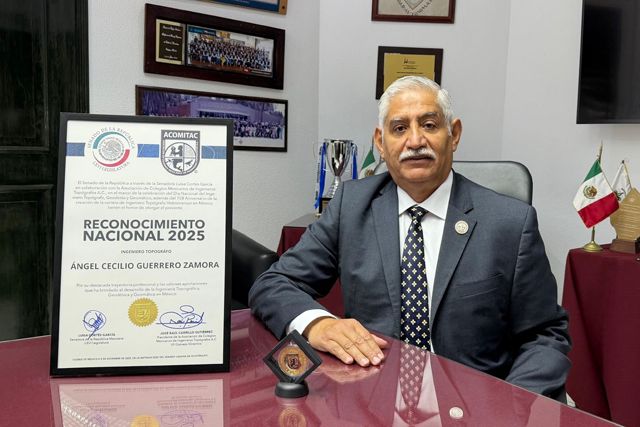 El director recibió la Medalla Pascual Ortiz Rubio por parte de la Asociación de Colegios Mexicanos de Ingenieros Topógrafos, A.C (ACOMITAC).