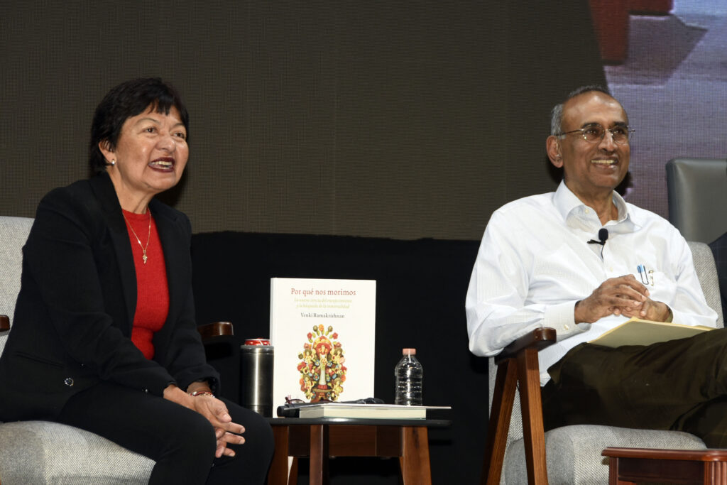 Por su parte, el doctor Venki Ramakrishnan compartió con los alumnos su interés por estudiar la complejidad de uno de los procesos biológicos del ser humano: la muerte, catalogada como un proceso multifactor. “Más allá de los titulares en los periódicos y la fama de mi laboratorio en la Universidad de Cambridge, mi objetivo es abundar en el envejecimiento del ser humano, cuyo cuerpo sufre una transición a lo largo de su vida”.